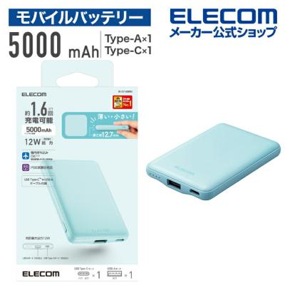 薄型コンパクトモバイルバッテリー (5000mAh/2.4A/Cx1+Ax1)