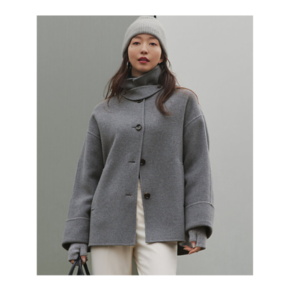 立体的な袖のフォルムが魅力的な、ステンカラーコート。首元のチンフラップを留めて襟を立たせることでエレガントな印象になりつつ、防寒にも◎。 ゆったりとした身幅と袖感なので、インナーに左右されず、着回しがききます。腰回りもしっかりカバーできるレングスなので、スカート・パンツどちらでもバランスを取りやすいデザインです。リバー仕立ての軽さと暖かさを併せ持った、NEWデザインアウターです。カラーは柔らかく軽やかなオートミール(#033)、着映え力抜群なティールグリーン(#064)、こなれた印象のミディアムグレー(#004)、王道主力カラーのブラック(#005)の4色展開です。