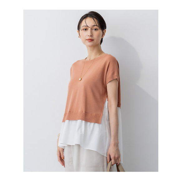 【SALE】【送料無料】23区 L (Women/大きいサイズ)/ニジュウサンク エル【洗える】レイヤードデザイン ニット 022_ライトオレンジ トップス【三越伊勢丹/公式】