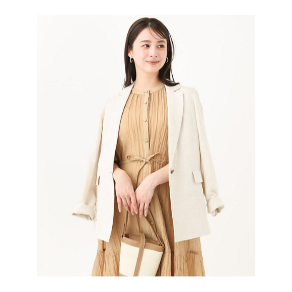 さっとカーディガン感覚でラフに羽織れるジャケットは春夏の羽織りものとして重宝してくれること間違いなし。スカートやワンピースとの相性も抜群。同素材のパンツ【F1LGA48160】もご用意しているのでセットアップでの着こなしも楽しめます。