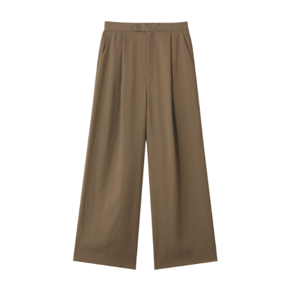 1er Arrondissement テンセルワイドパンツ (カーキ, 36) プルミエ アロンディスモン 【ELLE SHOP】