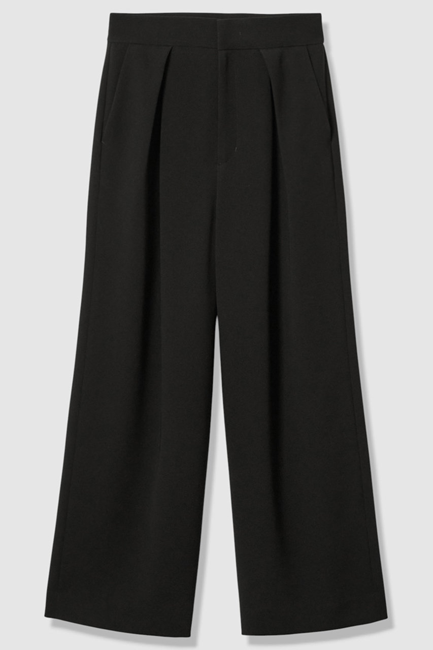ANAYI 【セットアップ対応商品】ダブルクロスタックワイドパンツ (ブラック, 38) アナイ 【ELLE SHOP】
