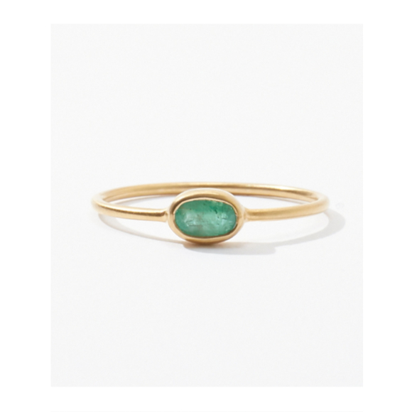 美しいローズカットのオーバルシェイプの石をK10ゴールドのリングにセッティング。石のカットは人工的なものではなく、温かみを感じさせるカッティング。インド・ジャイプールの職人の手により一点一点丁寧に仕上げられるリングは、どことなく有機的なフォルムと、独特の柔らかな風合いが魅力。他の石のリングとの重ね付けもおすすめ!