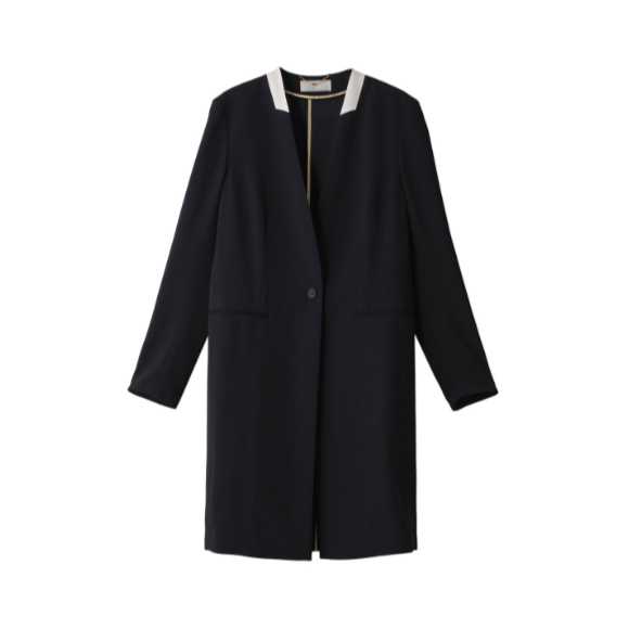 BEIGE, CINDY(シンディ)/ノーカラーロングジャケット (Navy × White, 4) ベイジ, 【ELLE SHOP】