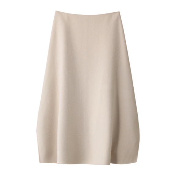 クリーンでシンプルなデザインが素材の美しさを引き立てるスカート。しなやかなタッチと程よいハリ感、保温性を備えた素材使いが魅力。シンプルながらも、サイドのスリットがトレンドの抜け感を添える1枚。腰まわりはフィット感があって、女性らしさも忘れない仕上がり。 トルソー着用はエクリュ、2サイズ。