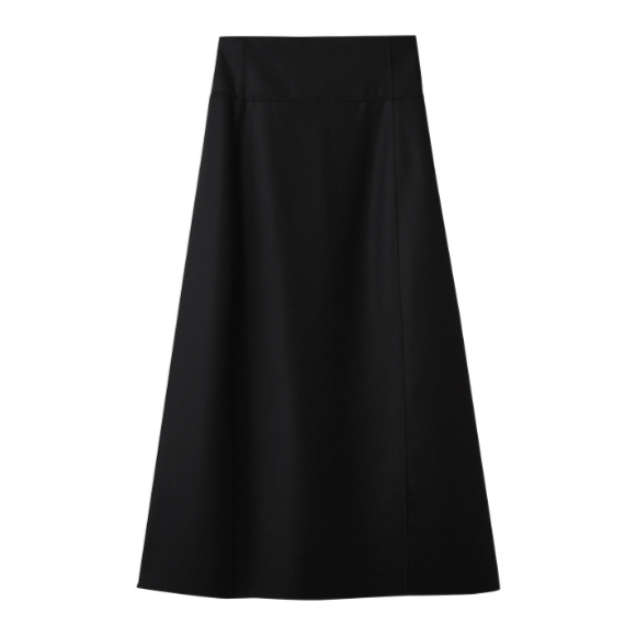 纏うだけで大人の女性らしさを引き出すトラペーズスカート。ハイウエストのすっきりとしたシャープなラインに、柔らかなフォルムがスタイルアップ効果を叶えつつ、トップスインもバッチリ決まる1枚。合わせるシューズや小物次第でフォーマルシーンにも対応。トルソー着用はブラック、36サイズ。