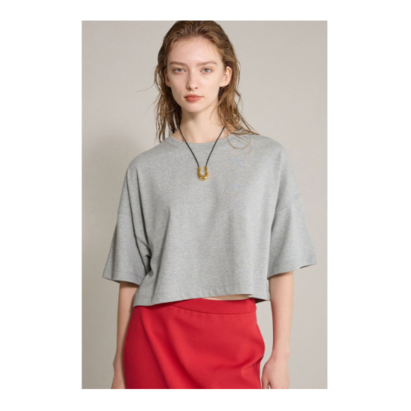 オーバーサイズのクルーネックTシャツをカットしたようなデザインが特徴で、身体に張り付かず快適な着心地を実現。