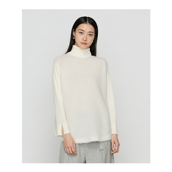 襟はゆったりと首に沿うニットハイネックがあたたかな着心地です。