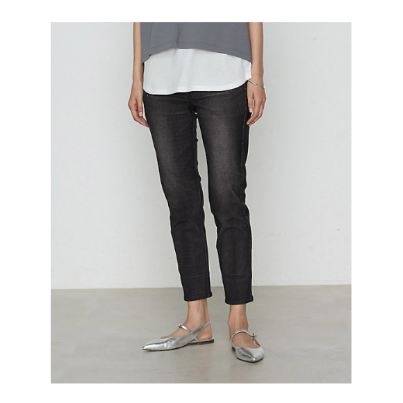 裾に向かって適度に細くなるスリムなシルエットに加え脇に向けて色が濃くなることで、視覚効果で脚の細見せが期待できます。