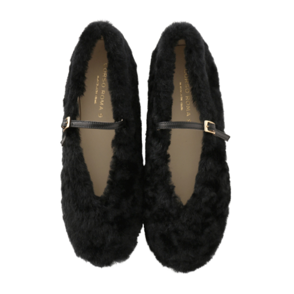 CORSO ROMA 9 シアリングVカットメリージェーンシューズ (ブラック, 36.5(23.5)) コルソローマ ノーヴェ 【ELLE SHOP】