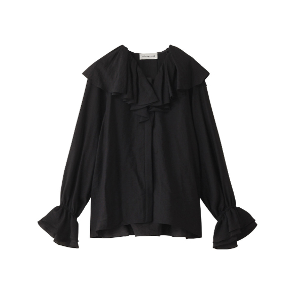 DEPAREILLE シアーシルクラッフルブラウス (ブラック, 38) デパリエ 【ELLE SHOP】