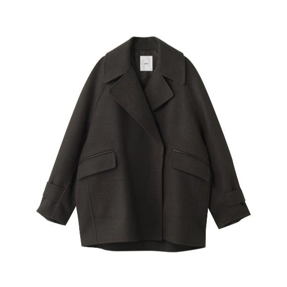 続き袖にマチが付いた丸みをもたせたフォルムと小顔効果のあるビックカラーが印象的なコート。カシミヤのような光沢となめらかさを備えたジロンラムウール素材をぜいたくに採用。後ろにはデザインダーツが入っており、包まれるようなフォルムが出るパターンをメイク。フラップポケットの玉縁部分にはレザーを使用して、素材感のコントラストをオン。体型を拾わない美しいミドル丈は、どんなコーデにも馴染み、シーンレスに活躍すること間違いなし。トルソー着用はブラック、38サイズ。
