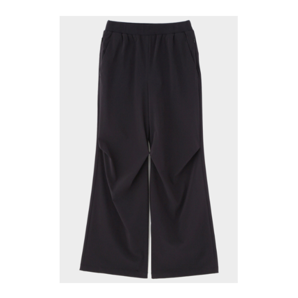 ストレッチ性に優れたナイロン素材を使用したワイドパンツ。軽量ながらも高い伸縮性を備え、ストレスフリーなはき心地。膝にアクションタックを取り、可動のしやすさにも配慮しつつ、シルエットに変化がつくようデザインポイントに。ウエストはニットリブを付けて肌当たりの良い柔らかな風合いに拘り、ウエストのフィット感もアップ。また、ポケットはフロントポケットの他にファスナーつきポケット4か所あり、収納力も◎。同素材で展開しているブラウスとのセットアップスタイルもおすすめ。