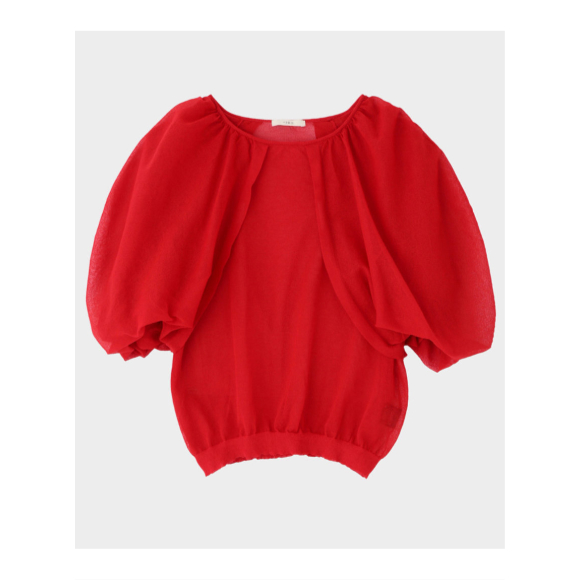 LE PHIL シアーパフスリーブニット (レッド, F) ル フィル 【ELLE SHOP】