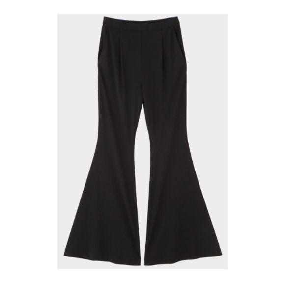 フィット感のある細身のシルエットで膝下から大胆なフレアのモードなフレアパンツ。シルエットもすっきりときれいに見せてくれ、幅広いトップスとも好相性。ストレッチのきいたジャージ素材ではき心地が良く、シワになりにくいのもうれしいポイント。