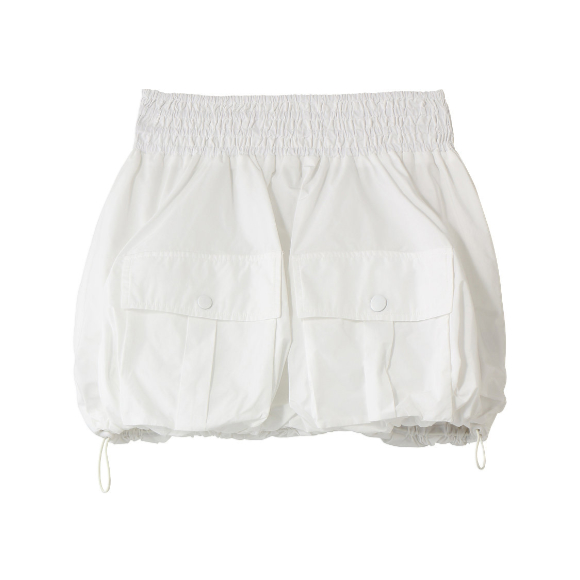 ミニスカート・ベアトップとしても着用可能。裾はドローコードの仕様で、ボリューム感をお好みで調整可能。様々なレイヤードやスタイリングを楽しむことが出来る優秀アイテム。