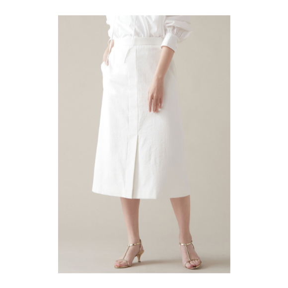 定番のドライオックスシリーズ。夏らしい素材感、きれいめなシルエットに組織のある生地が少しカジュアル感あり、堅くなりすぎず着こなせるタイトスカート。ハイウエストのすっきりしたバランスが◎。ニット、カットソーなどトップスを選ばずコーディネートしやすいアイテム。ホワイト、ベージュ、ネイビーは同素材のジャケットと合わせてセットアップとしても着用可能。