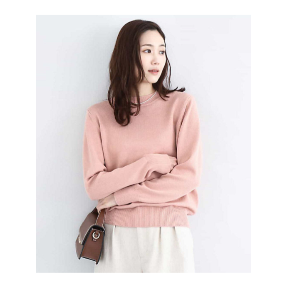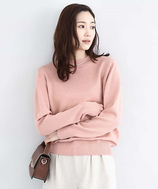 キラキラのラメが華やかなモックネックニット。素材の可愛さがポイントのニットは、デザイン自体はベーシックで使い勝手の良さにこだわりました。