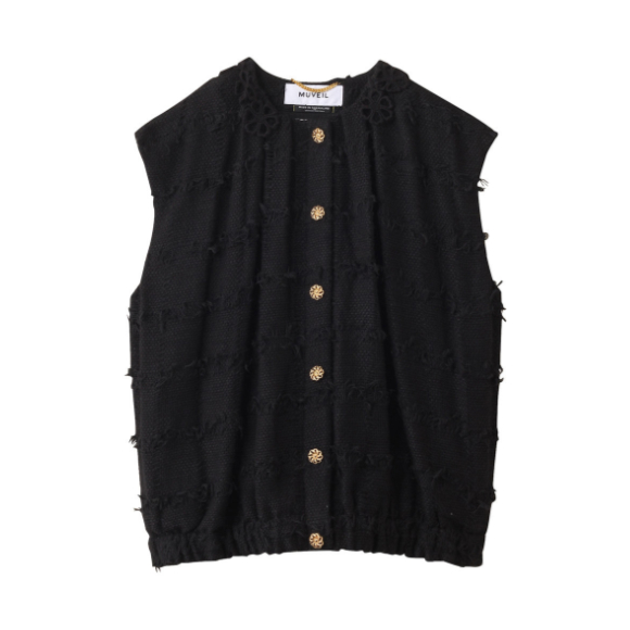 MUVEIL フラワーモチーフツイードベストジャケット (ブラック, 38) ミュベール 【ELLE SHOP】