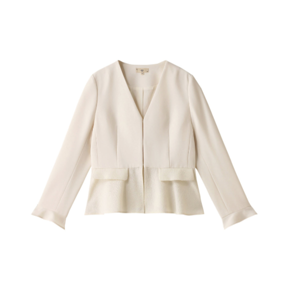 MW トリアセテート(H) VIRGIN WOOLVネックジャケット (エクリュ, 36) エムダブリュー 【ELLE SHOP】