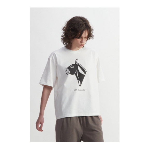 ジャージ素材のシンプルなTシャツ。シーズンテーマ””pet sounds””をインスピレーション源にしたアニマル柄プリント。ぴったりし過ぎずカーディガンやジャケットのインにも着やすいサイズ感のレディースサイズ(2サイズ、3サイズ)と、一枚で着られるオーバーシルエットのメンズサイズ(5サイズ)の展開。