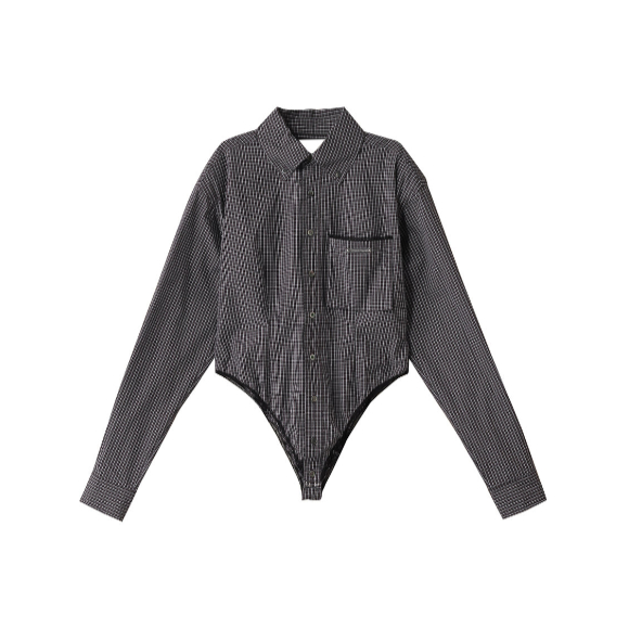 シャツの品の良さに、ボディスーツとランジェリーディティールで遊びを加え、これ一着でミックスマッチエレガンスを体現できる一着。