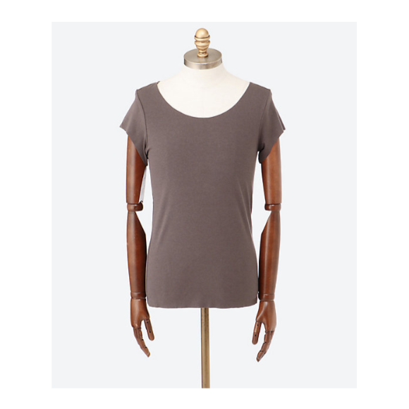 ・カットオフ(R)仕上げで襟ぐり、袖口、裾まわりは、フラットに仕上げています。そのため、下着のラインがうつりにくく、アウターウェアをすっきりと着こなせます