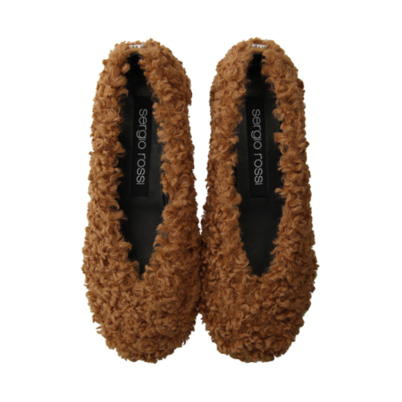 カーリーなファブリックで仕上げた新コレクションのラウンドトゥバレリーナ“srMUPPET”。マペット人形を思わせるかわいらしい存在感とともに、優しい温かさを感じる丸みのあるボリュームが魅力。赤みのあるブラウンは今シーズンの新色。
