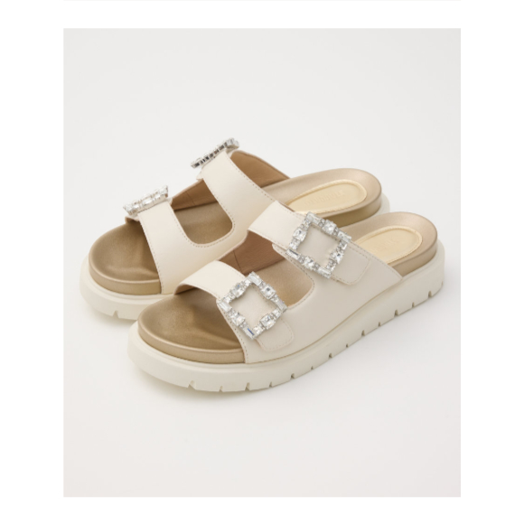 華やかなストーンバックルがSTACCATOらしい、春から秋まで長期間活躍するモード&エレガントな雰囲気のコンフォートサンダル。