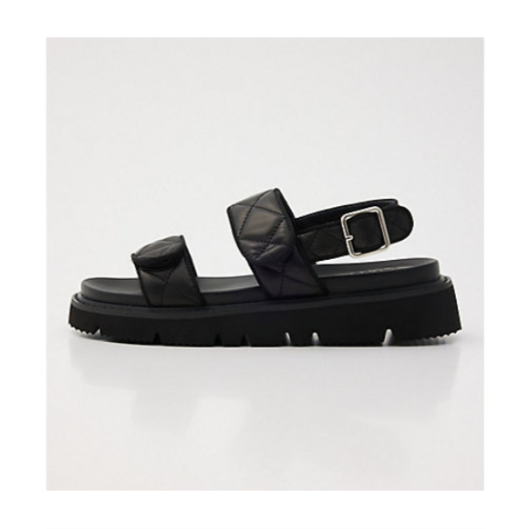 表情感のあるふっくらとしたキルティングデザインサンダル。足にフィットするカップソールに適度な高さのプラットフォーム。ソックスを合わせても、モードにもスポーティーなスタイルにも◎です。
