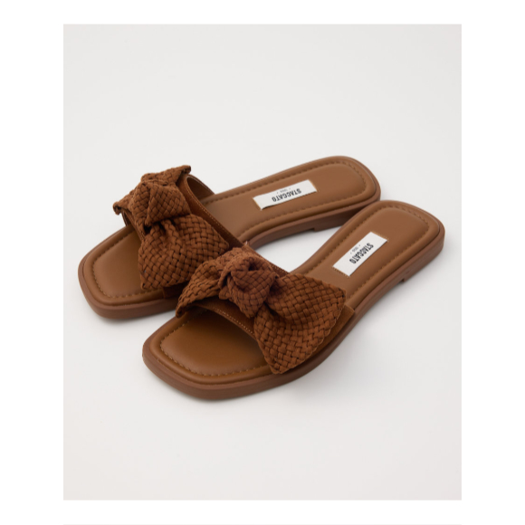 ラフに履けるのにだらしなく見えない、編み込みされたイントレチャートリボンがキュート。