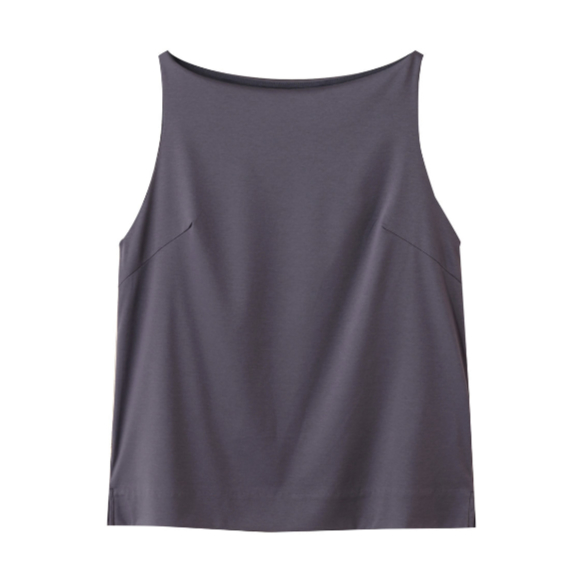 オンオフ問わずシーンレスで着まわしたい、上質なコットン100%素材をハイゲージ編みで仕立てたキャミトップス。広めのネックラインとショルダーラインで、シンプルながらもフェミニン見えする1着に。単品使いはもちろん、シャツやジャケットのインナー使いにもおすすめ。トルソー着用はダークパープル、Mサイズ。