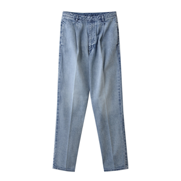 カジュアルの定番に外せないデニムを、テーパードのすっきりとしたシルエットにセンターラインをプラスして、きれいめ顔にブラッシュアップ。ウエストは高めに設定して、スタイルアップ効果も期待できそう。素材の絶妙なブリーチ感がおしゃれ心を射止め、はくだけで上級者なデニムコーデにチェンジ。トルソー着用はブリーチ、2サイズ。