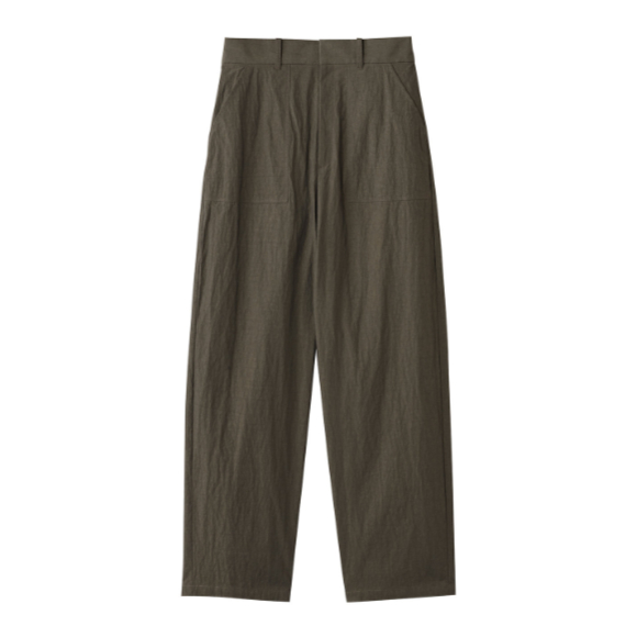 独特なシワとシボ感で一点投入で着こなしに深みと奥行きを与え、シンプルコーデをブラッシュアップしてくれるパンツがお目見え。ウエストは後ろゴム仕様ですっきりとまとめつつ、腰回りにはゆとりを持たせリラクシーな穿き心地を叶えて。テイストを問わずスタイリングできるから、デイリーの定番はこれで決まり。トルソー着用はブラック Sサイズ。