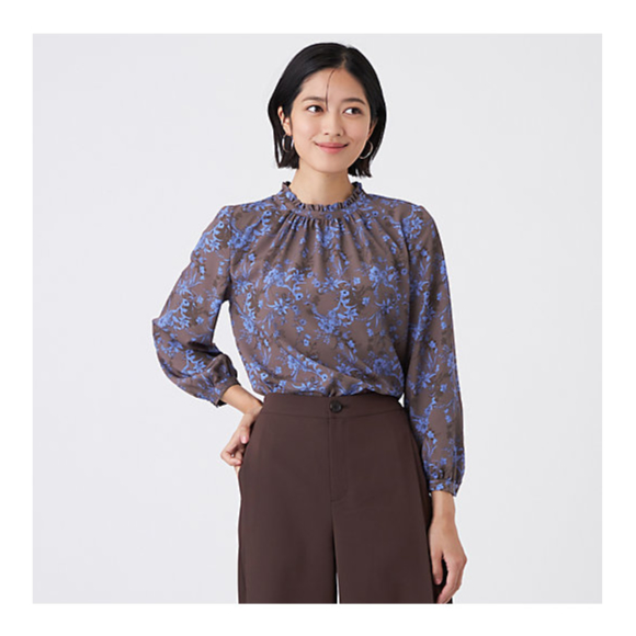 TRANSWORK (Women)/トランスワーク【ウォッシャブル】エッチングフラワープリントブラウス チャ56L トップス【三越伊勢丹/公式】