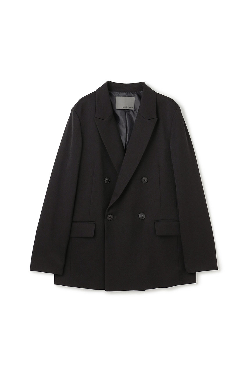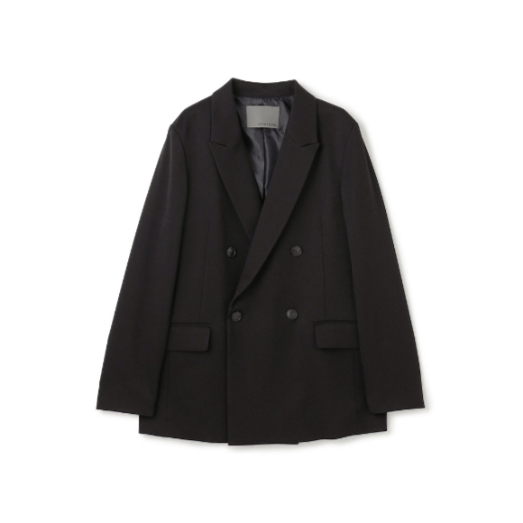 ダブル前にピークドラペルのデザインがメンズライクなジャケットは、肩幅をほんの少しオーバーサイズにし、ウエストを絞らないボクシーなシルエットにすることで、着やすさとこなれ感を両立するバランスに。同素材のパンツやスカートとのセットアップでの着こなしがおすすめ。