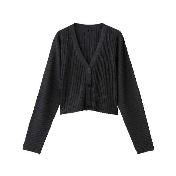 uncrave シqライプニット ドルマンカーディガン (チャコール, 2) アンクレイヴ 【ELLE SHOP】