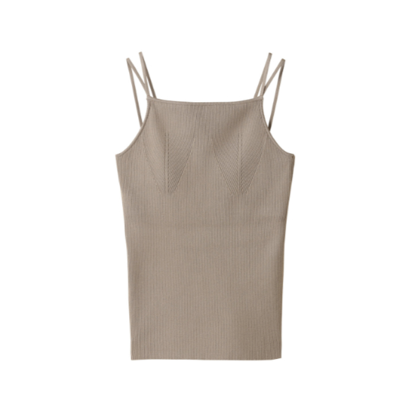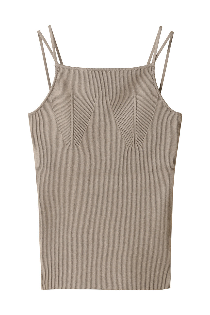 程よい厚みのRIB編みで、安心感と高級感のあるカップ付きインナー。胸元の目立てデザインがアクセントに。