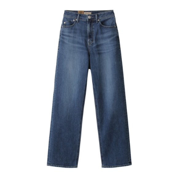 色褪せ感のあるビンテージライクな風合いでこなれ感たっぷりに仕上げたアイテム。ハイウエストデザインがスタイルアップ効果を、程よくゆとりのあるストレートシルエットとストレッチ素材が着心地の良さを演出。環境にも人にも優しい生産方法で作られたオーガニックコットンとサステナブルなリサイクルストレッチ糸で仕上げているのも◎。トルソー着用はミスティーブルー 24サイズ
