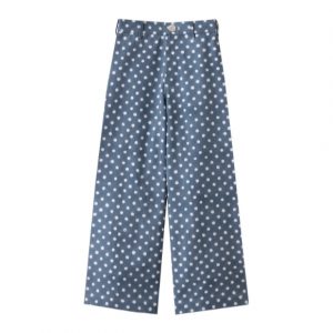 SZ BLOCKPRINTS DISCO PANTS POLKA DOT ワイドパンツ (ネイビー, L) エスゼット ブロックプリント 【ELLE SHOP】